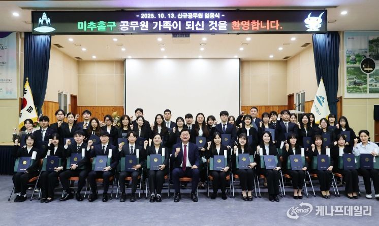 케나프데일리 이은성 기자 | 인천 미추홀구는 지난 13일 구청 대회의실에서 신규 공무원 42명에 대한 임용장 수여식을 개최했다.