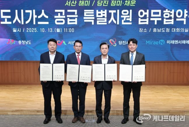 케나프데일리 이은성 기자 | 당진시는 13일 충남도청 대회의실에서 충청남도, 미래앤서해에너지와 함께 도시가스 공급 특별지원 업무협약(MOU)을 체결했다고 밝혔다.