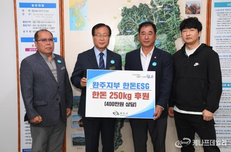 케나프데일리 이은성 기자 | (사)대한한돈협회 완주지부가 완주군에 400만 원 상당의 돼지고기 전지 250kg를 전달했다.