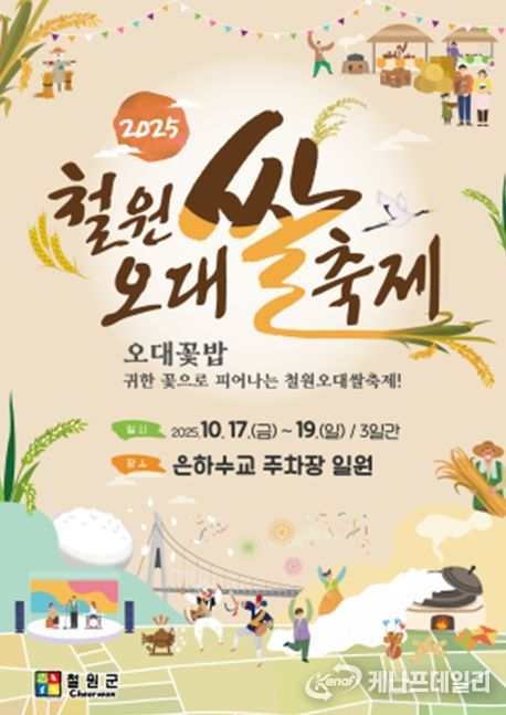 케나프데일리 이은성 기자 | 철원군은 10월 17일부터 19일까지 3일간 철원군 동송읍 장흥리 2721번지 은하수교 주차장 일원에서 『2025 철원오대쌀 축제』를 개최한다.