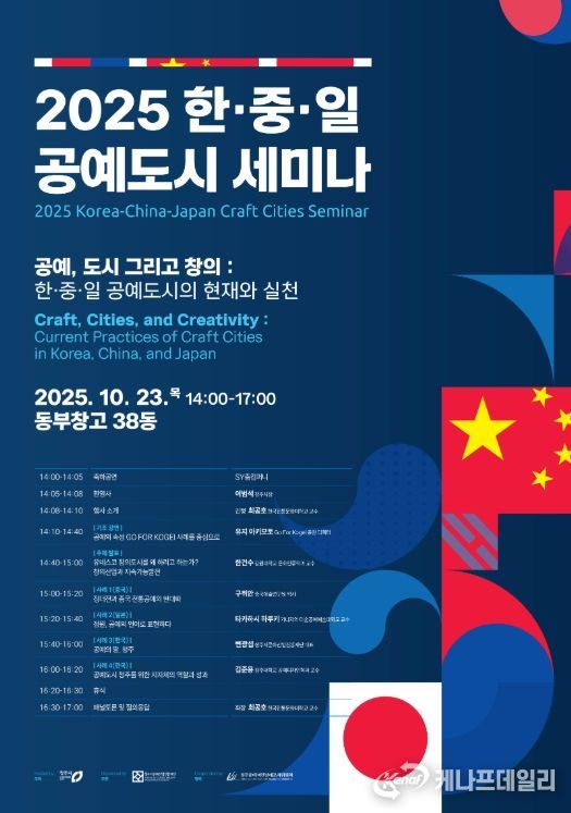 청주공예비엔날레조직위원회는 오는 23일 오후 2시 문화제조창 동부창고 38동에서 ‘2025 한·중·일 공예도시 세미나(Korea-China-Japan Craft Cities Seminar)’를 개최한다.