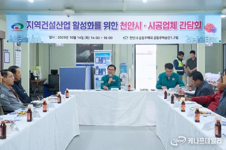 케나프데일리 이은성 기자 | 천안시는 14일 공동주택 시공사 현장소장과 간담회를 갖고 건설현장의 안전관리 강화와 지역경제 활성화 방안을 논의했다.