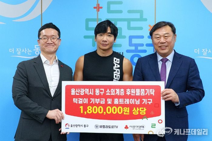 이날 전달식에는 바벨라토르 운영자 리쌤(이재호)이 직접 찾아와 김종훈 동구청장에게 성금과 물품을 전달했다.