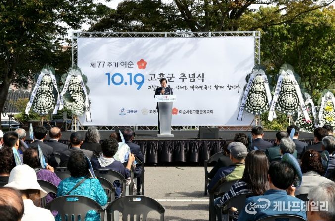 케나프데일리 이은성 기자 | 고흥군은 17일 '여수·순천 10·19사건' 발생 77주기를 맞아 희생자들을 기리는 공식 추념식을 위령탑 앞에서 엄숙히 거행했다.