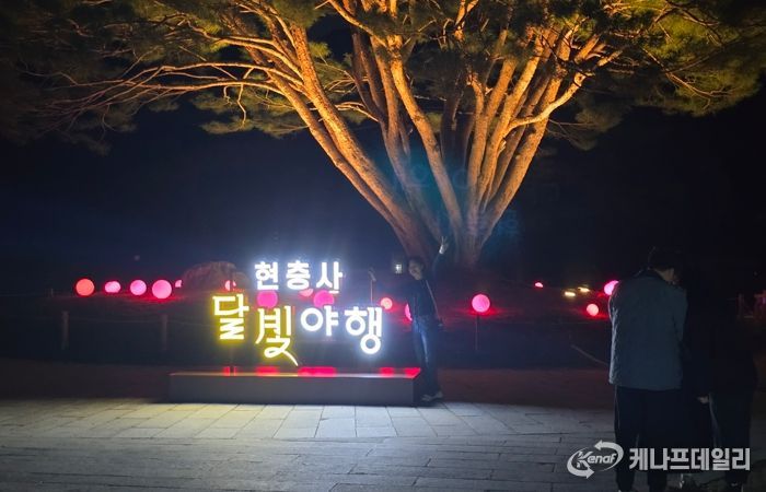 이번 행사의 또 다른 볼거리는 현충사 전역을 수놓은 야간 경관 조명이었다. 대형 게이트와 거북선 조형물, 발광다이오드(LED)볼과 네온플렉스 조명, 달 조명과 큐브 조형물 등 곳곳에 설치된 포토존에서는 가족과 연인들이 추억을 남기느라 분주했다.