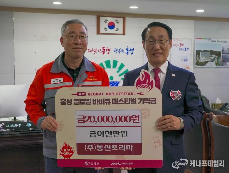 케나프데일리 이은성 기자 | (주)동신포리마 박영대 대표가 지난 20일, 2025 홍성글로벌바비큐페스티벌의 성공을 기원하며 홍성군청을 찾아 기부금 2천만원을 기탁했다.
