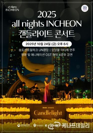 케나프데일리 이은성 기자 | 인천광역시와 인천관광공사는 문화체육관광부 국비 공모사업인‘야간관광 특화도시 조성사업’의 일환으로‘2025 all nights INCHEON 캔들라이트 콘서트’를 24일 오후 6시, 송도센트럴파크 UN 광장에서 개최한다고 밝혔다.