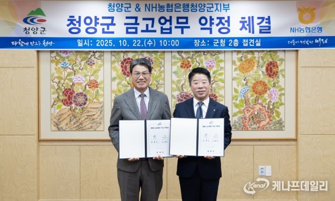 케나프데일리 이은성 기자 | 청양군은 지난 22일 군청 접견실에서 NH농협은행 청양군지부와 차기 금고 업무 취급을 위한 약정식을 갖고 약정을 체결했다.