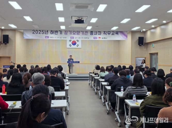 케나프데일리 이은성 기자 | 김제시는 24일 시청 3층 대회의실에서 관내 장기요양기관 시설장 및 종사자 100여명을 대상으로 2025년 하반기 장기요양기관 종사자 직무교육을 실시했다고 밝혔다.