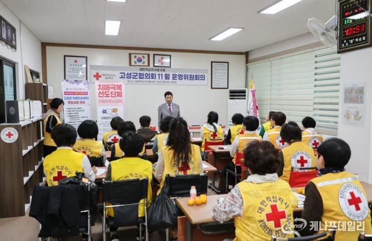 케나프데일리 이은성 기자 | 고성군 치매안심센터는 11월 4일 1시부터 대한적십자 사무실에서 대한적십자사봉사회 고성지구협의회 회원을 대상으로 치매에 대한 바른 이해와 치매안심센터의 역할을 주제로 한 치매인식개선 교육을 실시했다.