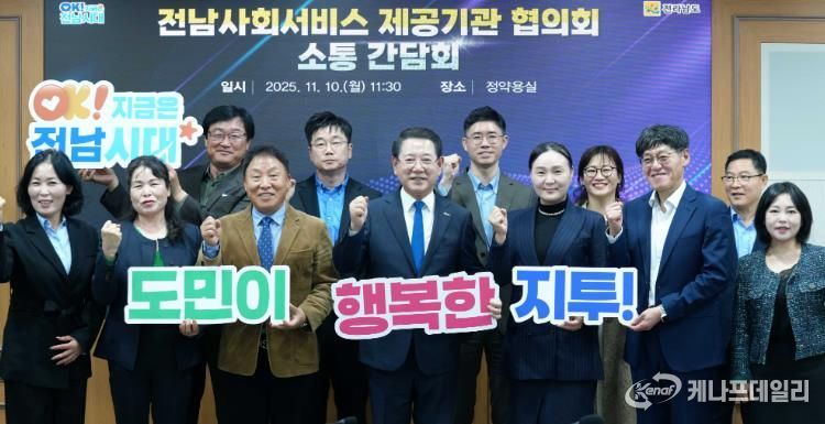 케나프데일리 이은성 기자 | 김영록 전라남도지사는 10일 도청 정약용실에서 전남 지역사회서비스 제공기관 협의회 대표단 10명과 함께 간담회를 갖고, 전남도 지역사회서비스 투자사업 활성화 방안을 논의했다.