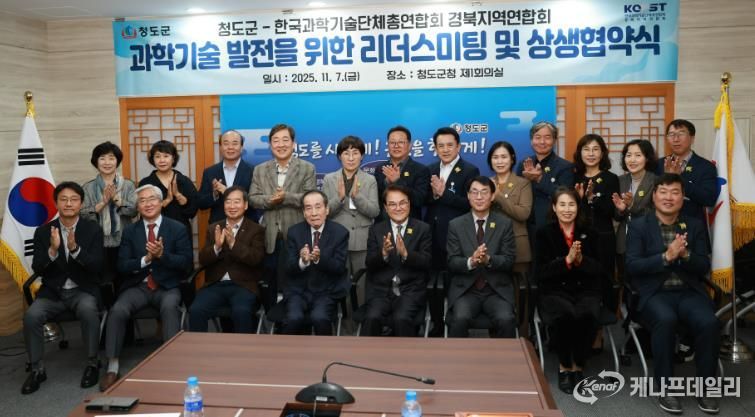케나프데일리 이은성 기자 | 청도군과 한국과학기술단체총연합회 경북지역연합회는 7일 청도군청 제1회의실에서 청도군 간부공무원과 경북지역연합회 임원 등 30여 명이 참석한 가운데 ‘경북 과학기술 발전을 위한 리더스미팅’을 개최했다.