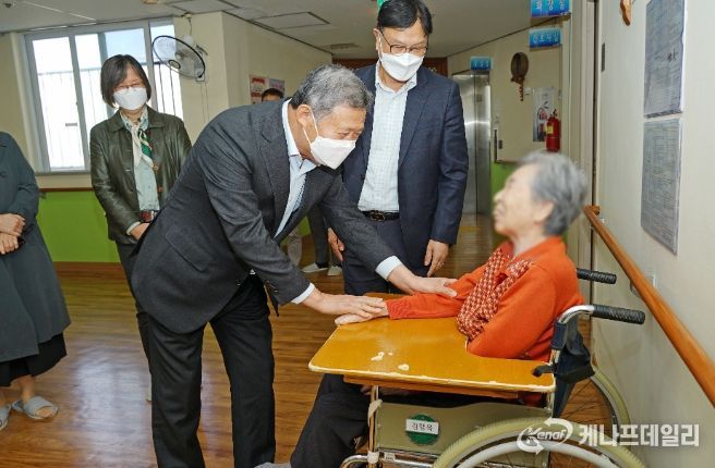 이어 생활 시설 내부를 돌아본 후 시설에서 생활하는 어르신들을 찾아 직접 인사하며 따뜻한 마음을 전했다.
