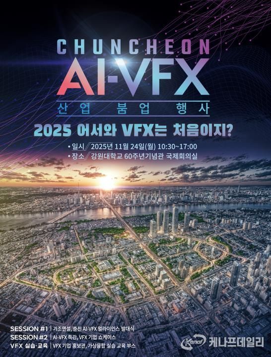 케나프데일리 이은성 기자 | 춘천시는 2025년 11월 24일 강원대학교 60주년 기념관 국제 회의실에서 ‘춘천 AI-VFX 산업붐업행사 – 2025 어서와! VFX는 처음이지?’를 개최한다고 밝혔다.