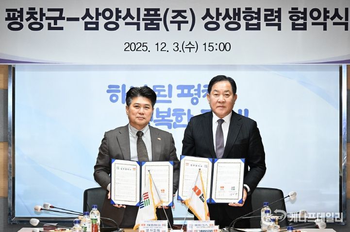 케나프데일리 이은성 기자 | 평창군과 삼양식품은 지방 소멸 위기에 대응하고 지속 가능한 지역 성장 기반을 마련하기 위해 ‘지방 살리기 상생 자매결연’ 업무협약을 체결했다.