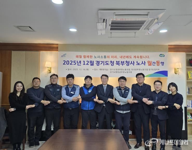 케나프데일리 이은성 기자 | 경기도 북부청과 경기도청 3개 노동조합(경기도청공무원노동조합, 전국공무원노동조합 경기도청지부, 경기도통합공무원노동조합)은 ‘노사월동(노사 월간동행)’을 매월 정기적으로 운영해 오며 실질적인 조직문화 개선과 노사 간 신뢰 회복 기틀을 마련했다고 22일 밝혔다.