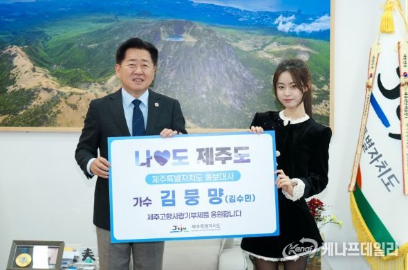 케나프데일리 이은성 기자 | 제주특별자치도는 22일 오전 제주도청 집무실에서 가수 겸 유튜버 김뭉먕 씨를 제주도 홍보대사로 위촉했다고 밝혔다.