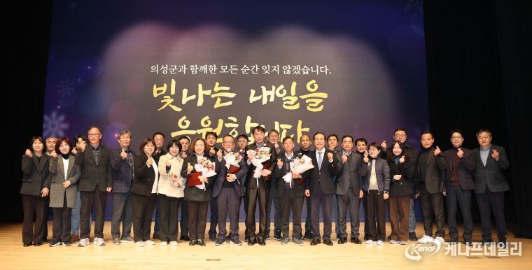 케나프데일리 이은성 기자 | 의성군은 지난 22일 오전 11시 의성청소년문화의집 공연장에서 2025년 하반기 합동퇴임식을 개최했다. 이날 행사에는 김주수 의성군수를 비롯해 부서장과 직원, 퇴직자 가족 등 약 150명이 참석해 오랜 기간 군정 발전을 위해 헌신한 퇴직 공직자들의 공직 여정을 되돌아보고 그간의 노고를 격려하는 뜻깊은 시간을 가졌다.