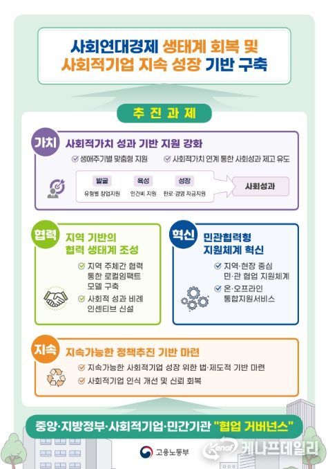 케나프데일리 이은성 기자 | 고용노동부는 가치, 협력, 혁신, 지속가능성을 기본전략으로 제시하고 사회적기업 생태계 회복과 지속가능한 성장 기반 구축에 본격적으로 나선다.
