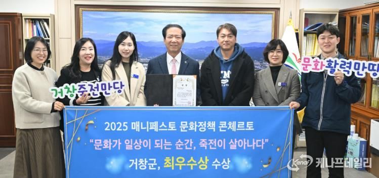 케나프데일리 이은성 기자 | 거창군은 강원특별자치도 원주시 상지대학교에서 개최한 ‘2025 전국 기초단체장 매니페스토 문화정책 콘체르토(Concerto)’ 대회에서 문화기반 도시활력분야 ‘최우수상’을 수상했다고 26일 밝혔다.