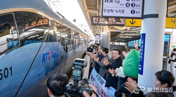 케나프데일리 이은성 기자 | 울산 북구는 30일 북울산역 KTX 이음 첫 차 운행에 따라 현장을 방문, KTX 이음 정차를 환영하고, 이용객들의 의견을 듣는 시간을 가졌다.