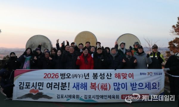 케나프데일리 이은성 기자 | 김포시와 김포시체육회·김포시장애인체육회가 지난 1일 하성면 봉성산에서 ‘2026 봉성산 해맞이 행사’를 개최하고, 시민들과 함께 병오년 붉은 말의 해의 시작을 알렸다. 이번 행사는 새해 첫 일출을 맞이하며 시민 화합과 지역 공동체의 안녕을 기원하기 위해 마련됐다.
