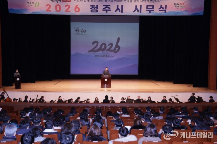 케나프데일리 이은성 기자 | 청주시는 2일 청주예술의전당 대공연장에서 2026년 시무식을 개최하고 새해 시정 운영의 힘찬 출발을 알렸다.