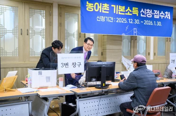 케나프데일리 이은성 기자 | 남해군에서 ‘2026년도 농어촌 기본소득 지급을 위한 신청 접수’가 한창 진행 중인 가운데, 장충남 남해군수는 12일 남해읍 행정복지센터를 방문해 기본소득 접수 현장을 점검하는 한편 관계 공무원들을 격려했다.