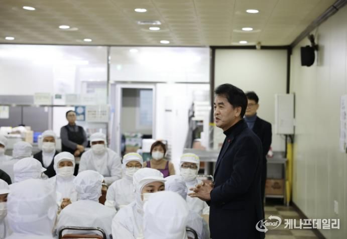 케나프데일리 이은성 기자 | 최재형 보은군수는 19일 ㈜이킴 삼승공장을 방문해 지난해 화재로 피해입은 보은공장 상황과 생산 정상화와 대체 생산 체계 운영 상황을 점검하고 임직원들을 격려했다.
