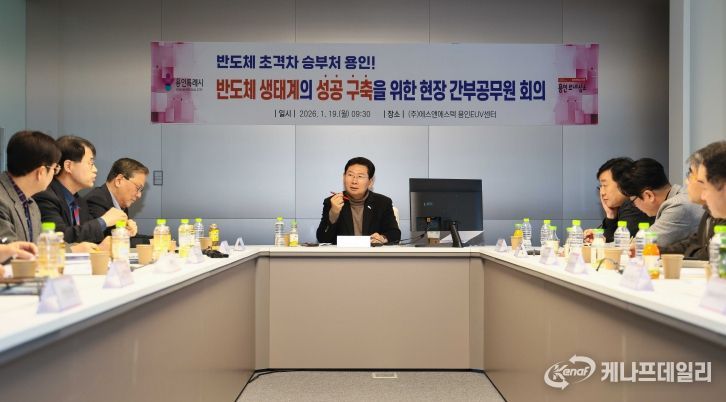 케나프데일리 이은성 기자 | 용인특례시는 19일 처인구 이동읍 용인테크노밸리 일반산업단지에 입주한 기업인 ‘(주)에스앤에스텍’에서 현장 간부공무원 회의를 개최했다.
