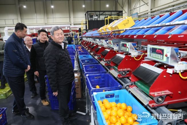 케나프데일리 이은성 기자 | 김완근 제주시장은 만감류 출하기를 맞아 1월 20일(화) 하귀농협 스마트 산지유통센터(APC)를 방문해 제주산 만감류의 유통 전 과정을 점검하고, 현장 의견을 청취했다.