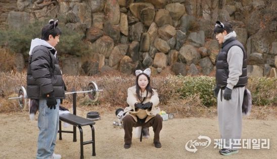 최근 진행된 녹화에는 구미호가 되고자 여우골에 모여 수련 중이던 멤버들 앞에 남다른 비주얼을 자랑하는 MZ 여우들이자, SBS 금토드라마 ‘오늘부터 인간입니다만’의 두 주인공, 배우 김혜윤과 로몬이 신입 여우로 등장했다. 배우 김혜윤은 등장과 동시에 지예은과는 확연히 비교되는 안정적인 스쾃을 선보이며 김종국의 환심을 샀다. 반면 뾰로통해진 지예은을 지켜보던 로몬은 곁에 다가가 “누나 되게 귀여우시네요”라며 직진 플러팅을 해 두 사람은 이미 구미호 완성형의 비주얼로 모두를 홀렸다.