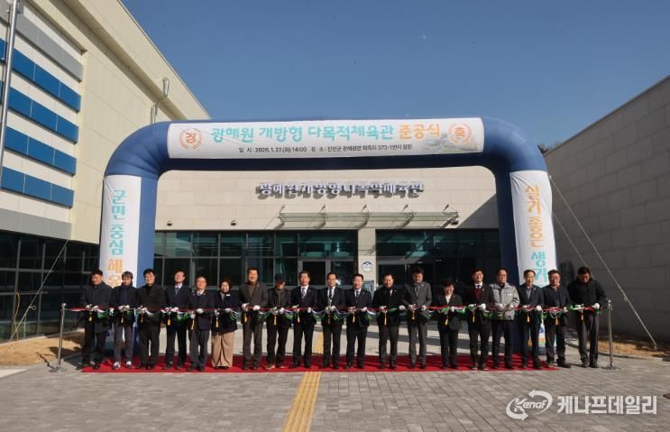 케나프데일리 이은성 기자 | 충북 진천군은 27일 광혜원면 광혜원리 373-1번지 일원에서 ‘광혜원 개방형 다목적체육관’의 준공식을 개최했다.