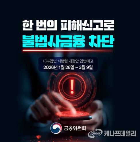 - 대부업법 시행령 개정안 입법예고 2026년 1월 26일~3월 9일