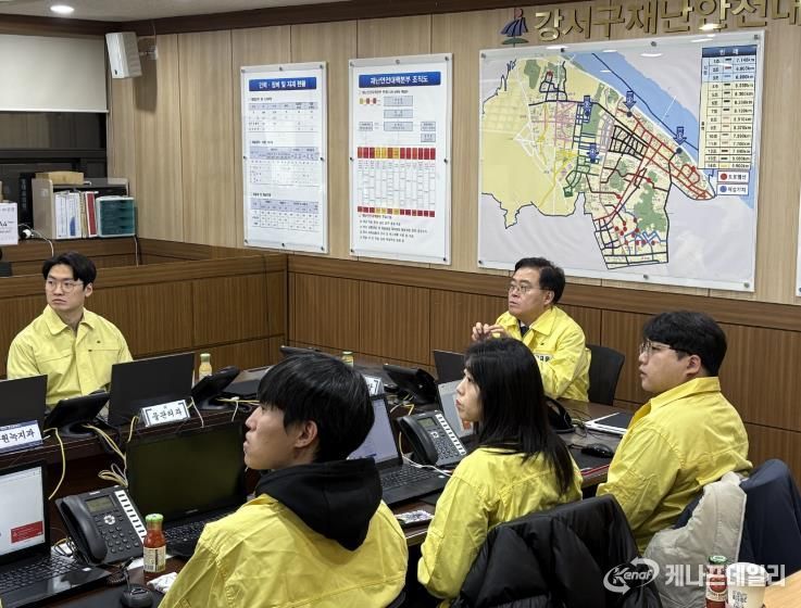 케나프데일리 이은성 기자 | 진교훈 서울 강서구청장이 1일 밤부터 2일 새벽 사이에 서울 전역에 많은 눈이 내릴 것이 예보됨에 따라 구 제설대책본부를 찾아 제설대응 체계를 점검했다.