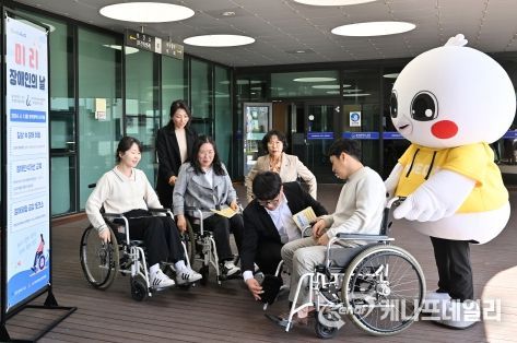 특히 이날 김이강 서구청장과 공직자 15명은 직접 휠체어를 타고 구청 곳곳을 다니며 업무를 수행하고 장애체험을 통해 느낀 점을 생각카드에 정리하는 시간을 가졌다. 또한 체험이 끝난 후 경험한 수기를 나누며 현실적 차원의 정책 제안을 펼치는 공감 토크쇼를 진행했다.