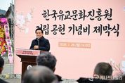 케나프데일리 이은성 기자 | 논산시는 26일 노성면에 위치한 한국유교문화진흥원에서 ‘기념비 제막식’을 개최했다. 제막식에는 조관행 노성면 어르신회장을 비롯해 백성현 논산시장, 조용훈 논산시의회의장 및 시 의원, 관내 유관기관과 단체 관계자 등 200여 명이 참석했다. 백성현 논산시장은 “이 세상은 누군가의 희생과 헌신의 씨앗으로 피어나는 꽃과 같다”며 “민족의 얼을 길이 보전하기 위해 큰 결심을 해 주신 종중 어르신들께 깊은 감사의 인사를 드린다”고 말했다. 이어 “전 세계적으로 유학에 대한 관심이 높아지고 있는 만큼, 한국유교문화진흥원은 논산의 뿌리깊은 유교 문화와 정신을 널리 전파하는 중심 역할을 하게 될 것”이라며 “문화, 경제, 농업, 국방 등 모든 분야에서 논산의 가치를 높이기 위해 실천하는 행정을 펼쳐 나가겠다”고 말했다. 지난 2022년 개관한 한국유교문화진흥원은 한국유교문화와 충청지역 국학의 대표적인 연구기관이다. 건립 과정에서 파평윤씨노성대종중은 약 2만 평의 토지를 기부하며 논산이 지닌 유교적 가치와 정신을 후대에 온전히 계승하고 지역 문화의 뿌리를 굳건히 세울 수 있도록 하는 데