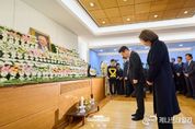 케나프데일리 이은성 기자 | 이재명 대통령과 김혜경 여사가 1월 27일 서울 종로구 서울대병원 장례식장에 마련된 고 이해찬 전 총리 빈소를 찾아 영정을 향해 묵념하고 있다.