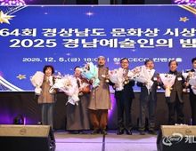 케나프데일리 이은성 기자 | 경상남도는 5일 창원컨벤션센터에서 열린 ‘제64회 경상남도 문화상 시상식 및 경남예술인의 밤’에서 “오늘 수상자 한 분 한 분은 평생을 한 분야에서 고집스럽게 열정을 갖고 노력해 오신 훌륭한 예술인”이라며 축하의 뜻을 전했다. 이어 “경남의 문화예술인분들 덕분에 올 한해 도민들이 예술을 통해 생활 속 활력을 찾고 아름다움과 행복을 느낄 수 있었다”라며 감사 인사를 덧붙였다. 1962년 제정돼 64년째 이어지고 있는 ‘경상남도 문화상’은 지역 문화예술 발전에 기여한 인물을 선정하는 도내 최고 권위의 상으로, 지금까지 총 380명의 수상자를 배출하며 지역 문화예술사의 굵직한 발자취를 남겨왔다. 올해는 총 7개 부문에서 문화예술계의 오랜 헌신과 성취를 보여준 인물이 수상자로 선정됐다. ❶(학술․교육 부문) 故 김주석 화백, ❷(문학 부문) 김미숙 시인, ❸(조형예술 부문) 김진량 통도요 대표, ❹(공연예술 부문) 전민규 큰들문화예술센터 예술감독, ❺(문화․언론 부문) 리영달 치과의사, ❻(체육 부문) 이수소 경남체육발전협의회 회장, ❼(청년 부문) 최성진 따가다가 아트컴퍼니 대표 &nbs