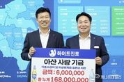 케나프데일리 이은성 기자 | 아산시는 하이트진로(주) 천안지점이 17일 아산시 취약계층 지원을 위한 성금 600만 원을 기탁했다고 밝혔다. 이날 전달한 성금은 충남사회복지공동모금회를 통해 아산시 취약계층을 위한 사업에 지원될 예정이다. 김태홍 하이트진로(주) 천안지점 지점장은 “어려운 경제 여건 속에서도 우리 지역의 소외된 이웃들에게 조금이나마 도움이 되고자 이번 성금을 마련하게 됐다”며 “앞으로도 지역사회와 함께 상생하는 기업이 되도록 노력하겠다”고 소감을 밝혔다. 오세현 아산시장은 “두꺼비가 힘차게 도약하듯 지역사회를 위해 큰 걸음을 내디뎌 주신 하이트진로(주) 천안지점에 깊은 감사를 드린다”며 “이번 성금이 어려운 이웃들에게 갈증을 해소하는 시원한 단비가 되고, 추운 겨울을 이겨낼 따뜻한 온기가 될 수 있도록 소중하게 사용하겠다”고 감사의 뜻을 전했다. 한편, 하이트진로(주)는 주류산업을 대표하는 국민기업으로 “진심을 多하다”라는 선전구호(캐치프레이즈)를 내걸고 매년 취약계층을 위한 나눔을 실천하고 있다. △한부모 및 위기가정 생계비와 의료비 지원 △김장철 소외 이웃 김장 나눔 △한 끼 식사