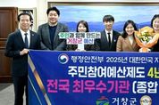 케나프데일리 이은성 기자 | 거창군은 지난 16일 정부세종청사에서 행정안전부가 주최하는 2025년 대한민국 지방재정대상 시상식에서 주민참여예산제도 운영 4년 연속 전국 최우수기관으로 선정되어 장관 기관표창과 함께 재정 인센티브 5천만 원을 받았다. 행정안전부는 매년 전국 지방자치단체 243개를 대상으로 주민참여예산제도 성과평가를 통해 지자체의 건전한 재정 운용과 지방재정 민주성책임성투명성 평가해 광역·시· 군·구 별로 각 1개씩 총 4개 기관만을 최우수기관으로 선정하고 있다. 거창군은 2018년, 2021년 우수기관에 선정된 데 이어, 2022년부터 2025년까지 4년 연속 최우수기관으로 선정되는 성과를 거뒀으며, 이는 전국 군 단위 82개 지자체 가운데 최상위 수준의 운영 역량을 입증한 것이다. 특히 올해는 ‘공감과 성장-진화하는 거창형 주민참여예산’이라는 슬로건 아래, △찾아가는 주민 예산학교 미래세대(초 · 중 · 고 · 대학생) 확대 운영으로 미래세대의 참여 환경 조성 △‘모방과 경연’을 주제로 거창군만의 차별화된 제안사업 공모유형을 다양화해 창의적 행정문화 확산 △회의 진행보조자(퍼실리테이터)를