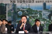 케나프데일리 이은성 기자 | 18일 거제 소노캄에서 ‘거제 기업혁신파크 성공추진 선포식’이 열렸다. 이번 행사는 경상남도, 거제시, ㈜그란크루세, 참여기업 및 핵심 입주기업들이 모여 거제 기업혁신파크의 성공적인 추진을 다짐하고, 협력과 상생의 기반을 다지기 위해 마련됐다. 선포식에는 박완수 경상남도지사를 비롯해 변광용 거제시장, 서일준 국회의원, 도·시의원, 거제 기업혁신파크 사업 공동제안자로 참여한 민간기업 ㈜그란크루세 김수홍 회장, 참여기업 ㈜수산인더스트리 김병현 사장, ㈜다산네트웍스 손경철 부회장, 네이버클라우드(주) 김준범 상무 등 관계자 20여 명이 참석했다. 행사는 △㈜그란크루세의 거제 기업혁신파크 사업 계획과 비전 제시, △참여기업의 시설 투자 등 참여계획 발표, △참석자들의 성공추진 선언문 낭독 순서로 진행됐다. 지난 10월 ㈜그란크루세와 네이버 클라우드(주)가 거제 기업혁신파크 참여기업(지분 투자)으로 투자확약서(LOC)를 체결한 이후 사업이 본궤도에 오르면서, 이번 선포식 추진에도 탄력이 붙었다. 변광용 거제시장은 지난 6월 네이버 클라우드의 기업혁신파크 투자유치를 위