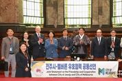 케나프데일리 이은성 기자 | 전주시와 호주의 대표도시인 멜버른시가 상호 발전을 응원하는 동반자가 되기로 했다. 우범기 전주시장이 이끄는 전주시 대표단은 현지시간으로 지난 10일 호주 멜버른 시청을 방문해 케빈 로웨이 멜버른 시의원과 오진관 주 멜버른 대한민국 총영사, 마크 코크레인 멜버른 국제협력실 국장, 멜버른 지역 언론사 등이 참석한 가운데 양 도시간 교류를 더욱 발전시키기로 뜻을 모았다. 특히 양 도시는 이 자리에서 우호적 국제관계를 맺는 공동선언에 나섰다. 이날 서명한 협력 체결서에는 △문화예술교류 활성화 △문화산업 및 관광·도시디자인 협력 △지속가능한 문화경제 발전 △공공·민간협력 네트워크 구축 등의 내용이 담겨 있다. 전주시와의 국제교류를 약속한 멜버른시는 호주 빅토리아주 기초자치단체 중 핵심이 되는 도시로, 호주 내에서도 가장 살고 싶은 도시로 선정된 바 있다. 우 시장을 비롯한 전주시 대표단과 멜번시 관계자들은 우호 협력 체결 이후 문화예술과 관광, 스포츠, 경제, 도시디자인, 교육 등 다양한 분야의 교류 확대 방안을 논의하기도 했다. 전주시 대표단은 멜버른