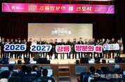 케나프데일리 이은성 기자 | 강릉시가 2027년까지 국내 관광객 5,000만 명, 외국인 관광객 50만 명 유치를 목표로 하는 ‘2026-2027 강릉 방문의 해’의 힘찬 출발을 공식 선언했다. 강릉시는 23일 금요일 오후 강릉시청 대강당에서 김홍규 강릉시장, 최익순 강릉시의회 의장, 최길영 국제관광도시 시민실천운동 추진위원회 위원장을 비롯해 유관 기관장과 시민 등 1,000여 명이 참석한 가운데 ‘2026-2027 강릉방문의 해’ 선포식을 성황리에 개최했다고 밝혔다. 이번 선포식은 ‘23년 강릉이 국제관광도시비전, ‘24년 국제관광도시 시민캠페인 추진위원회 발대식에 이어, 국제관광도시로 도약하기 위한 실천적 사업을 천명하고 전 시민의 참여 분위기를 조성하기 위해 마련됐다. 행사는 축하 공연, 추진계획 발표, 선포 퍼포먼스 및 BI(Brand Identity) 로고 공개 순으로 진행됐다. 심상복 문화관광해양국장은 ‘강릉 방문의 해’의 핵심 목표와 주요 추진 사업을 발표하면서 관광객이 좀 더 머물수 있도록 관광 콘텐츠를 고도화하고, 체류형 관광인프라와 특화 관광상품을 확대해 국내외 관광객 유치에 총력을 기울일 계