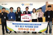 케나프데일리 이은성 기자 | 대구 중구는 대구시가 주최한 ‘2025년 적극행정·시정혁신 경진대회’에서 ‘전국 최초! 교동 음식물 수거 실명제로 악취도 잡고 시민의 마음도 잡다’ 사례로 최우수상을 받았다고 밝혔다. 최근 교동 일대는 젊은 층이 즐겨 찾는 음식점과 주점이 급격히 늘어나면서, 새벽 시간대에 배출된 음식물 쓰레기 용기가 하루 종일 인도에 방치되는 문제가 심화했다. 악취와 미관 훼손, 보행 불편, 관광객 민원까지 이어지며 기존의 단속 중심 행정으로는 한계가 있었다. 이에 중구 환경과는 ‘현장에서 답을 찾자’라는 적극행정 정신 아래 전국 최초로 ‘음식물 수거 실명제 기반 생활환경 개선사업’을 기획·추진했다. 이 제도는 각 업소의 간판 이미지를 담은 전용 스티커를 음식물 수거 용기에 부착해 소유주를 명확히 표시하는 방식으로, 수거 후에는 용기를 해당 업소 앞으로 즉시 되돌려놓아 무분별한 방치와 악취 발생을 원천 차단했다. 사업 추진 과정에서 환경과 직원들은 교동 일대 61개 업소를 직접 방문해 170여 개 용기를 세척하고, 간판 이미지를 촬영해 스티커를 제작·부착했다.