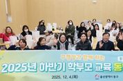 케나프데일리 이은성 기자 | 울산 동구는 12월 4일 오후 2시부터 4시까지 동구 청소년 진로지원센터 3층에서 ‘2025년 하반기 학부모 교육 동행(동구와 행복한) 반상회’를 개최했다. ‘학부모 교육 동행 반상회’는 관내 초·중·고등학교 학부모 30여 명이 참석했으며, 학부모 대상 진로 체험과 구청장과의 대화로 나뉘어 진행됐다. 학부모들은 강사의 지도에 따라 ‘플라워 박스 만들기’ 체험을 하며 자녀의 진로 교육을 간접적으로 경험하는 시간을 가졌다. 이어 김종훈 동구청장과 함께하는 ‘구청장과의 대화’가 열려 구청장과 학부모들이 자유로운 분위기 속에서 지역 교육과 생활 전반에 대한 다양한 의견을 나눴다. 김종훈 동구청장은 “아이들의 성장과 행복을 위해 학부모님들의 목소리에 귀 기울일 수 있었던 뜻깊은 시간이었다”라며, “앞으로도 학교와 가정, 지역이 함께하는 교육 공동체를 만들어가겠다”라고 말했다.