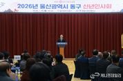 케나프데일리 이은성 기자 | 울산 동구는 1월 15일 오전 10시 30분 동구청 2층 대강당에서 2026년 울산광역시 동구 신년 인사회를 개최했다. 이번 신년 인사회는 동울산청년회의소(회장 전종현)가 주관한 것으로 김종훈 동구청장을 비롯한 동구 지역 각급 기관·단체장 200여 명이 참석하여, 구정 발전을 위한 덕담과 화합의 시간을 나눴다. 이날 행사에서는 ‘AI에게 동구의 미래를 묻다’라는 주제로 인공지능 프로그램을 활용해 동구청 직원들이 직접 제작한, ‘다시 뛰는 심장, 2040 울산 동구’ 영상을 함께 시청하며 동구의 미래를 그려보는 흥미로운 시간을 마련했다. 김종훈 구청장은 지난 3년 반의 시간 동안 ‘더 잘 사는 동구’를 목표로, 구청과 각급 기관단체가 함께 동구 주민의 더 나은 삶을 위해 힘써 왔다”라며 각급 기관·단체장들에게 감사의 인사를 전했다. 또한 “앞으로 산업과 도시의 구조 자체가 급변하는 미래를 맞이하여 한 단계 더 도약하고 성장하는 동구를 만들기 위해 기관·단체·기업이 손잡고 미래의 힘찬 여정을 함께해 주시길 바란다”라고 말했다.