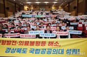케나프데일리 이은성 기자 | 지난 12월 17일 국회의원회관 대회의실에서 김형동 국회의원과 임미애 국회의원이 공동 주최한 ‘경상북도 국립․공공의대 설립 국회토론회’가 열렸다. 이날 토론회에는 이철우 경상북도지사, 권기창 안동시장 등 지자체 주요 인사와 경상북도 국립의과대학 설립 범시도민단을 포함한 시민단체 관계자 등 약 450명이 참석해 경북 지역 의료 여건과 국립의과대학 설립 필요성에 대한 논의를 이어갔다. 또한 권오을 국가보훈부 장관, 김도읍 국민의힘 정책위원회 의장, 김영호 더불어민주당 교육위원회 위원장 등 여야 의원 30여 명이 참석해 경북 국립의대 설립에 대한 관심을 보였다. 1부 개회식에서는 참석자들이 ‘경북 도민의 염원, 국립․공공의대 설립’이라는 문구가 적힌 손팻말을 들고 지역 의료 현안에 대한 공감의 뜻을 함께 표현했다. 2부에서는 유천 국립목포대 의과대학설립추진단 부단장이 ‘전남 국립의대 설립 현황 및 계획’을, 정태주 국립경국대학교 총장이 ‘경북도 국립․공공의대 설립의 필요성과 추진 방향’을 주제로 발표했다. 이어진 토론에서는 정태주 총장이 좌장을 맡고 김윤 국회의원