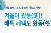 케나프데일리 이은성 기자 | 경기도와 경기도주식회사가 공동 운영하는 경기도 공공배달앱 배달특급이 겨울을 맞아 12월 한 달간 ‘겨울이왔동(冬)’ 소비자 할인 프로모션을 진행한다. ‘겨울이왔동(冬)’ 소비자 할인 이벤트는 ‘통 큰 세일’ 프로모션 종료 등으로 아쉬움이 남는 소비자들의 편익을 증대하기 위해 마련했다. 배달 특급 전체 회원, 전체 서비스 지역을 대상으로 1만2천원 주문에 사용가능한 3천원 할인 쿠폰을 예산 소진시까지 1일 1인 1회 지급한다. 한편 배달특급의 모든 이벤트는 해당 상단 배너 기능을 통해 확인 가능하며, 지역에 따라 할인 조건과 금액이 달라질 수 있어 사전 확인이 필요하다.
