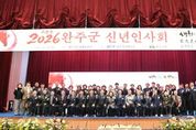 케나프데일리 이은성 기자 | 2026년 완주군 신년인사회가 12일 완주문화체육센터에서 완주청년회의소(JCI) 주관으로 열렸다. 이날 행사에는 유희태 완주군수 내외, 완주군의회 유의식 의장과 완주군의회 의원, 유관 기관·단체장, 이장, 부녀회장 등 각계 인사 200여 명이 참석했다. 행사는 식전공연을 시작으로 국민의례, 신년사, 축사, 덕담 및 건배 제의, 기념촬영 순으로 진행됐으며, 새해를 맞아 완주군의 도약과 결실을 다짐했다. 유충열 완주청년회의소 회장은 “완주청년회의소는 청년들의 열정과 아이디어를 중심으로 지역사회의 발전과 변화를 위해 앞장서겠다”며 “청년들의 목소리를 정책과 사업에 반영하고, 미래 세대가 더 나은 환경에서 꿈을 펼칠 수 있도록 지원을 강화하겠다”고 말했다. 덧붙여 “앞으로도 완주군과의 협력을 통해 상생과 소통의 지역 발전을 이루겠다”고 밝혔다. 유희태 완주군수는 신년사를 통해 “유지경성(有志竟成), 모두의 노력들이 모여 큰 성과를 이루는 해가 되기를 바란다”며 “2026년은 완주군이 그간의 노력의 결실을 맺고 미래행복도시로 도약하는 해로 만들겠다”고 다짐했다.